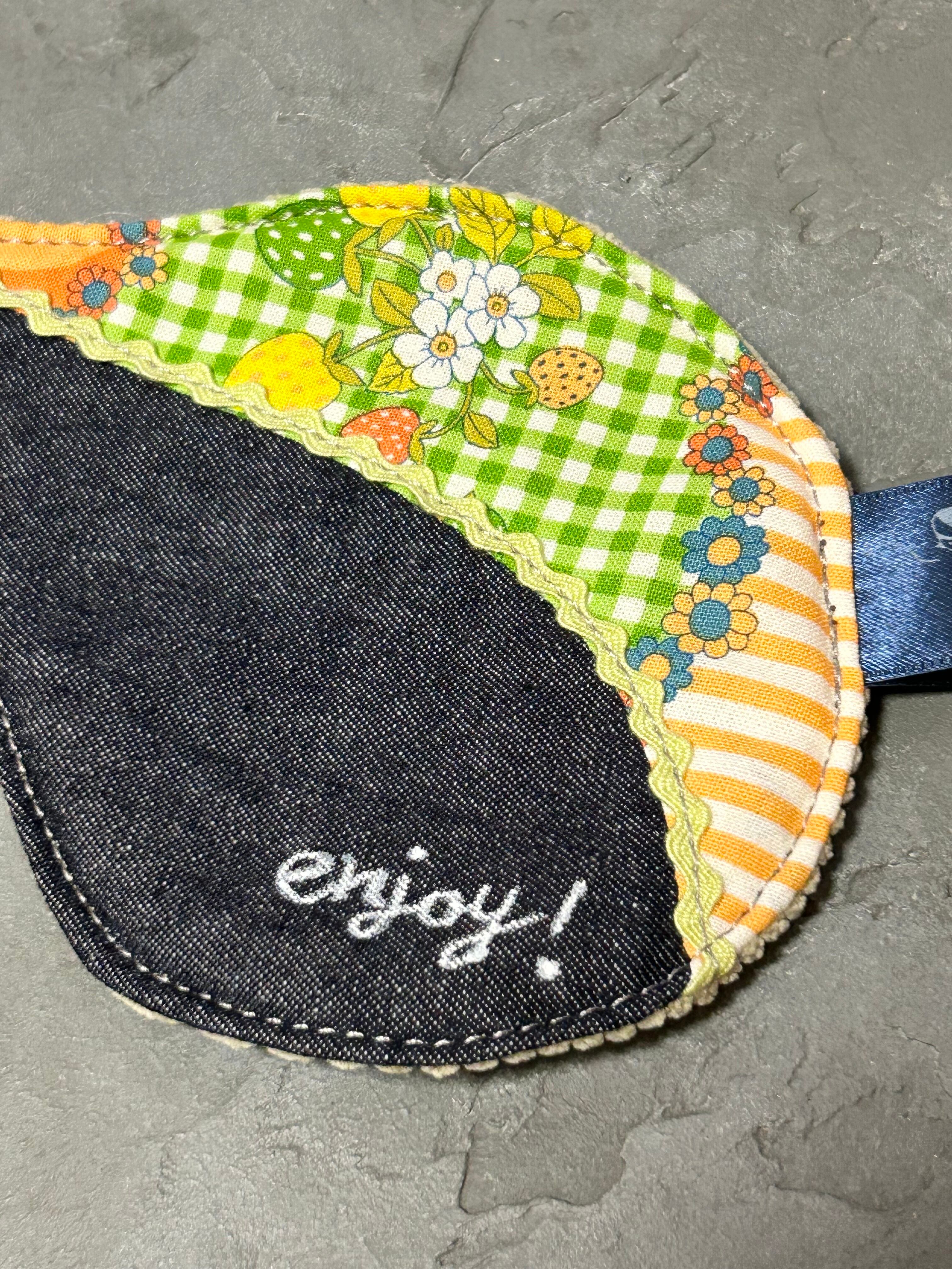 レトロな色合いのプリント生地がテーブルに華やかさを与えます。